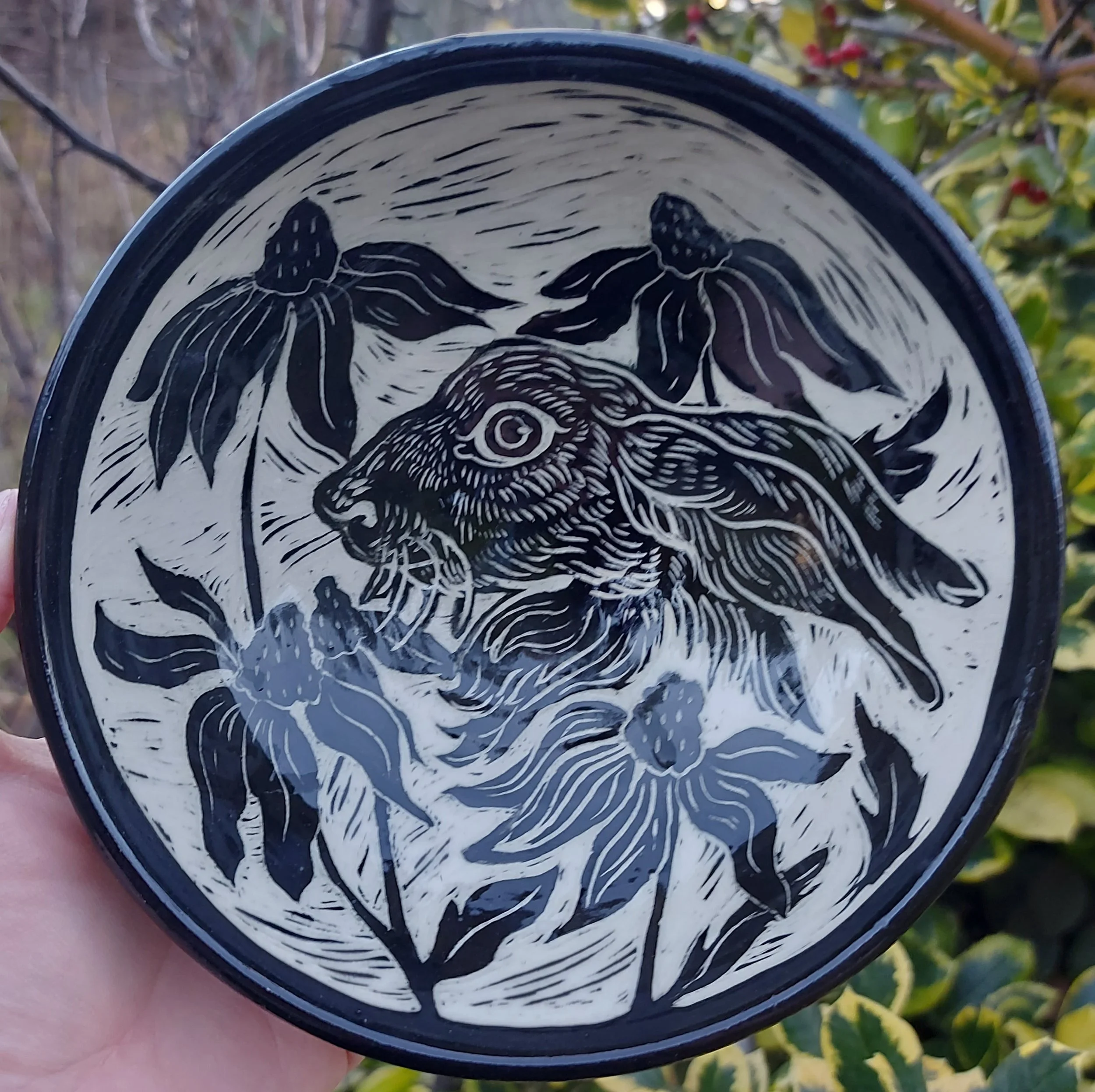 In addition to sculptural pieces, I create functional pottery with etched sgraffito designs on bowls, plates, and other vessels, and enjoy exploring the unique effects of raku firing. Whether handbuilding with coil or slab techniques or throwing on the wheel, I continually experiment to bring my ceramic visions to life.